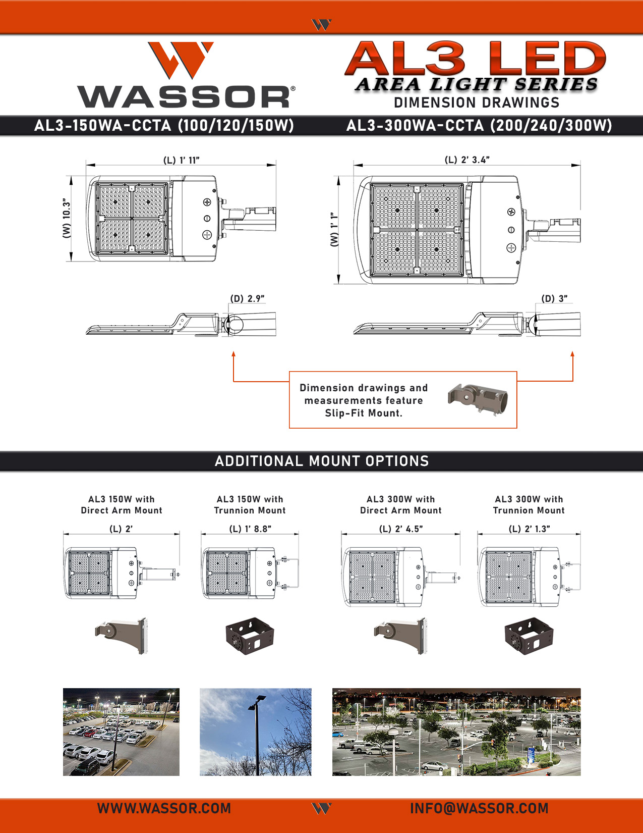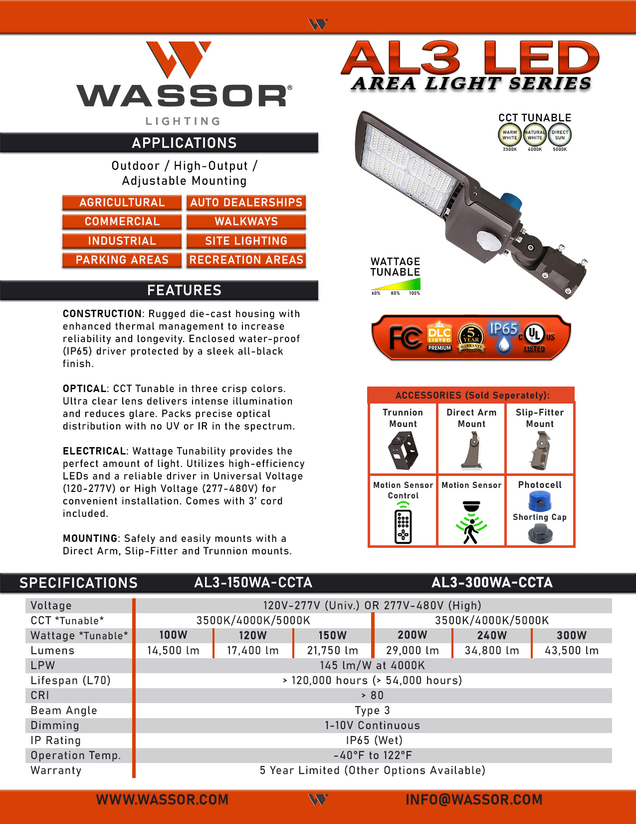 Meet the AL3 Area Light – crafted by our masters of innovation. Engineered with rugged die-cast strength and tenacious thermal management, it conquers every terrain. CCT tunability and ultra-clear optics bring winning precision to any space- just tune the Wattage for the perfect amount of glow. High-efficiency LEDs and a reliable driver ensure victory in every installation. Illuminate like a champion across agricultural, commercial, and industrial specialties.